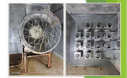 Rosenberg Fans Canada Ltd. lance un concept unique qui planifie tous les éléments nécessaires pour la modernisation de l’ancienne installation équipée de ventilateurs à courroies ou d'autres types de ventilateurs inefficaces. Nous avons la seule solution qui permet l’utilisation de moteurs EC à rotor externe qui peuvent être montés directement dans le plénum.