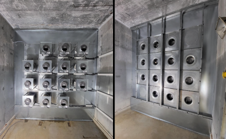 Une “ECFanGrid” est composée de plusieurs unités de ventilateurs plus petits conçus pour remplacer un plus grand ventilateur unique. Les composants sont assez petits pour pouvoir être manipulés par une porte existante Pas besoin de louer un équipement coûteux comme une grue.